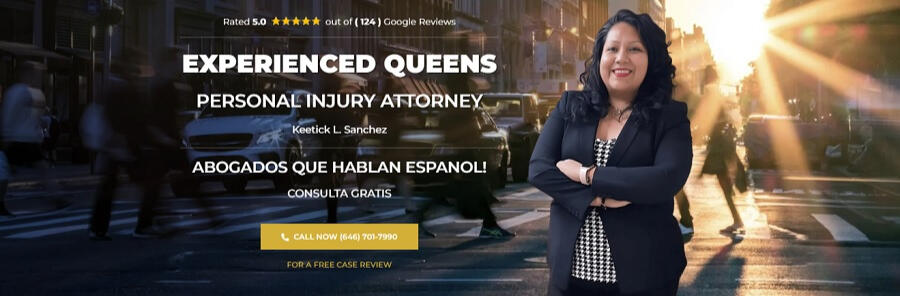 In the event that you or a cherished individual has suffered injuries in a car accident, construction accident, or any other type of accident in Queens, New York, it is of paramount importance to enlist the services of an experienced Queens accident lawyer to assist in securing the compensation you are entitled to.At K. L. Sanchez Law Office, we understand the physical, emotional, and financial burdens that victims of accidents in Queens often face. That is why our team of skilled personal injury lawyers, led by Keetick Sanchez, is dedicated to providing comprehensive legal representation to help you obtain the compensation you deserve.By contacting us at (646) 701-7990, you can schedule a free consultation with our team to discuss the details of your accident case. Our team of professionals will examine the specifics of your case and work tirelessly to craft a strong legal strategy designed to maximize your compensation.